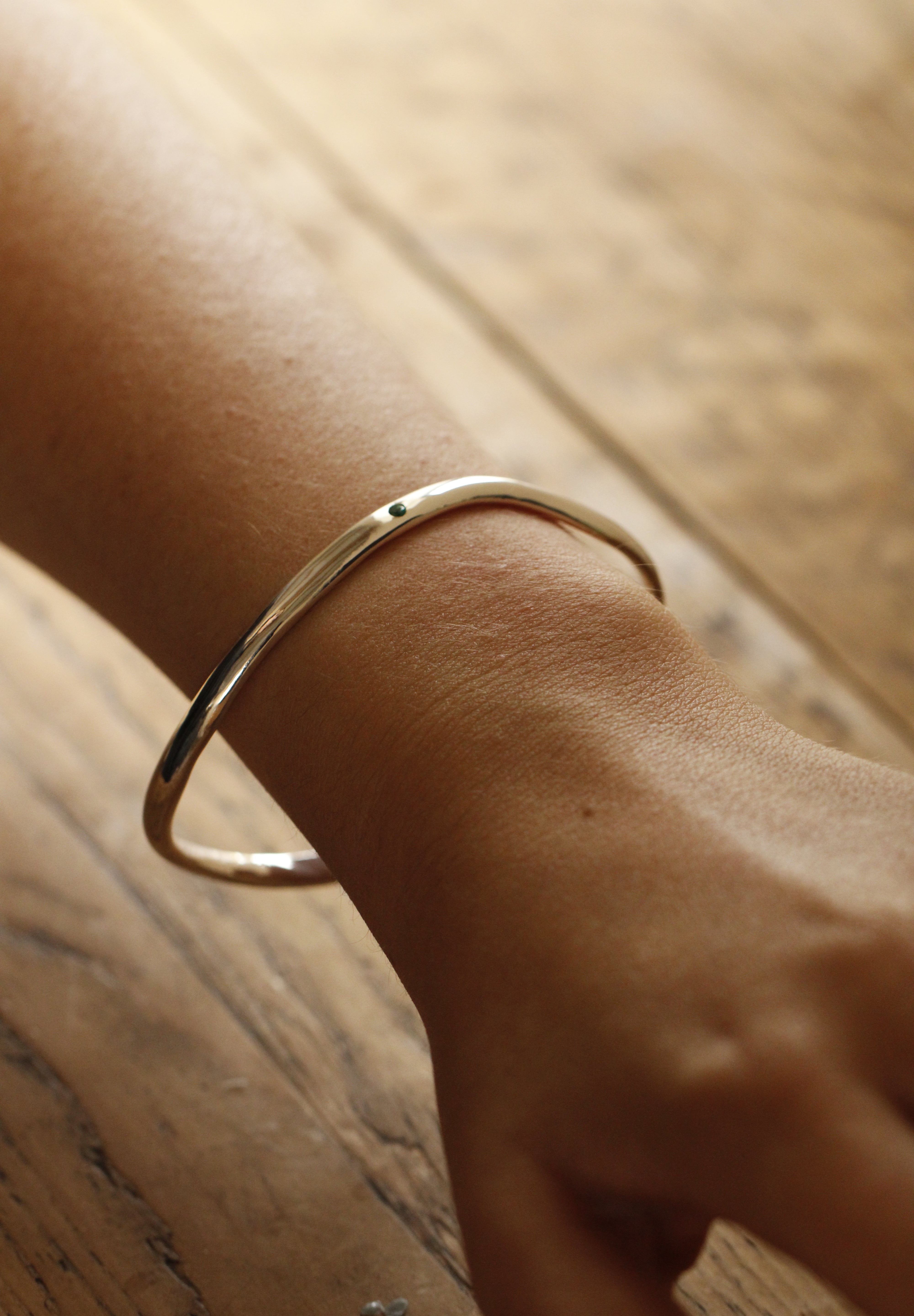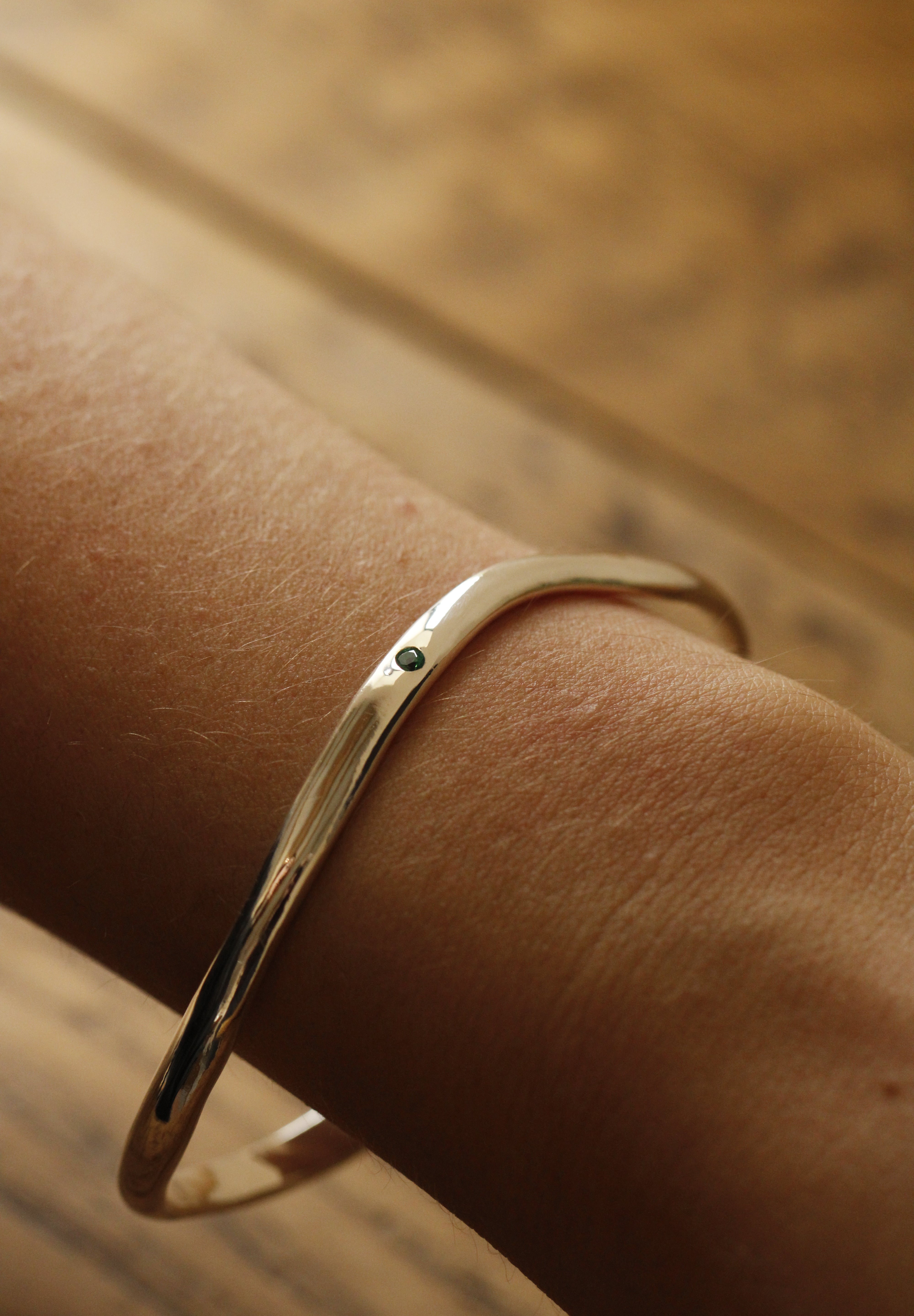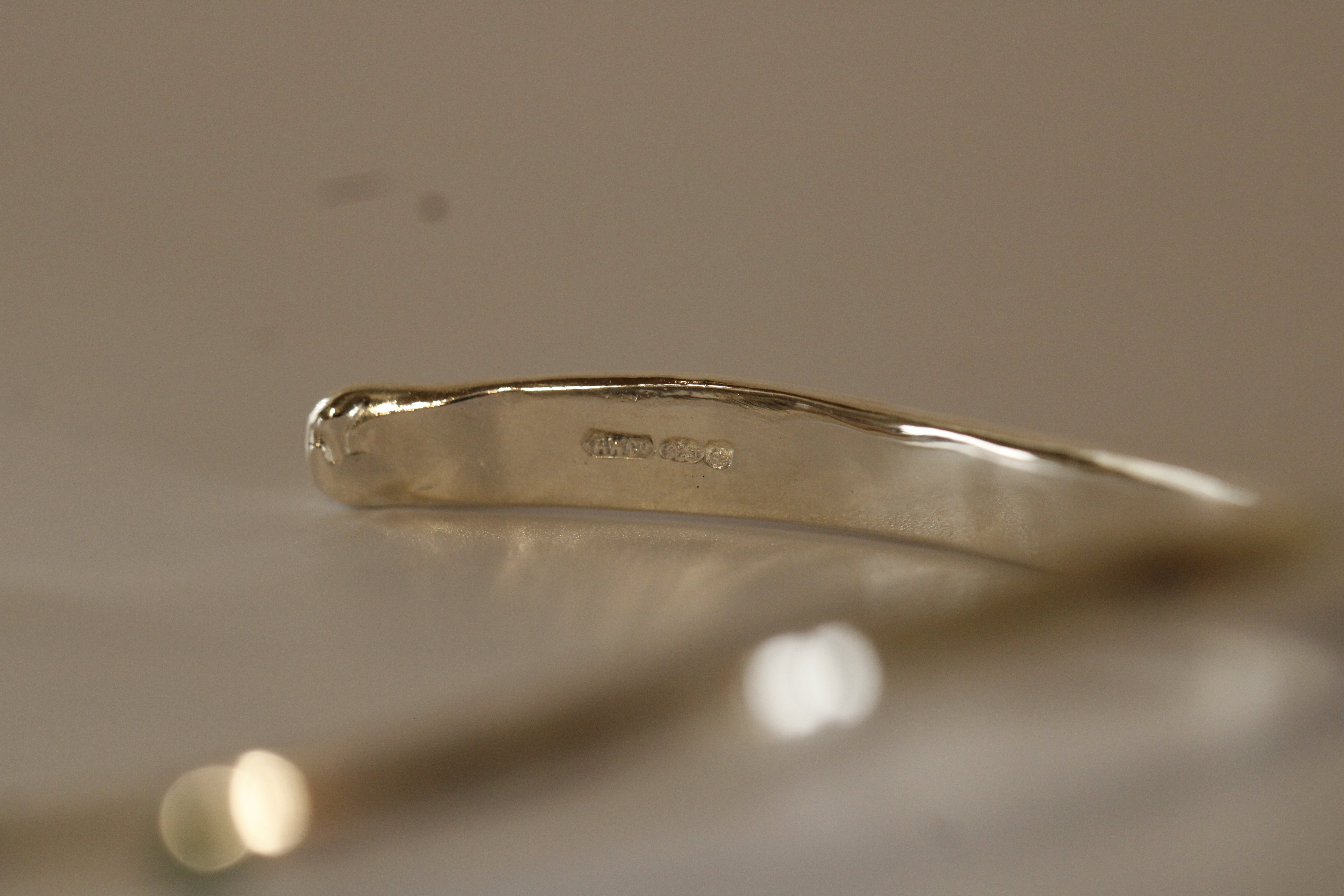 This piece is hallmarked for authenticity and designed for comfort — gently adjustable to fit most wrist sizes by softly squeezing to close around the wrist.