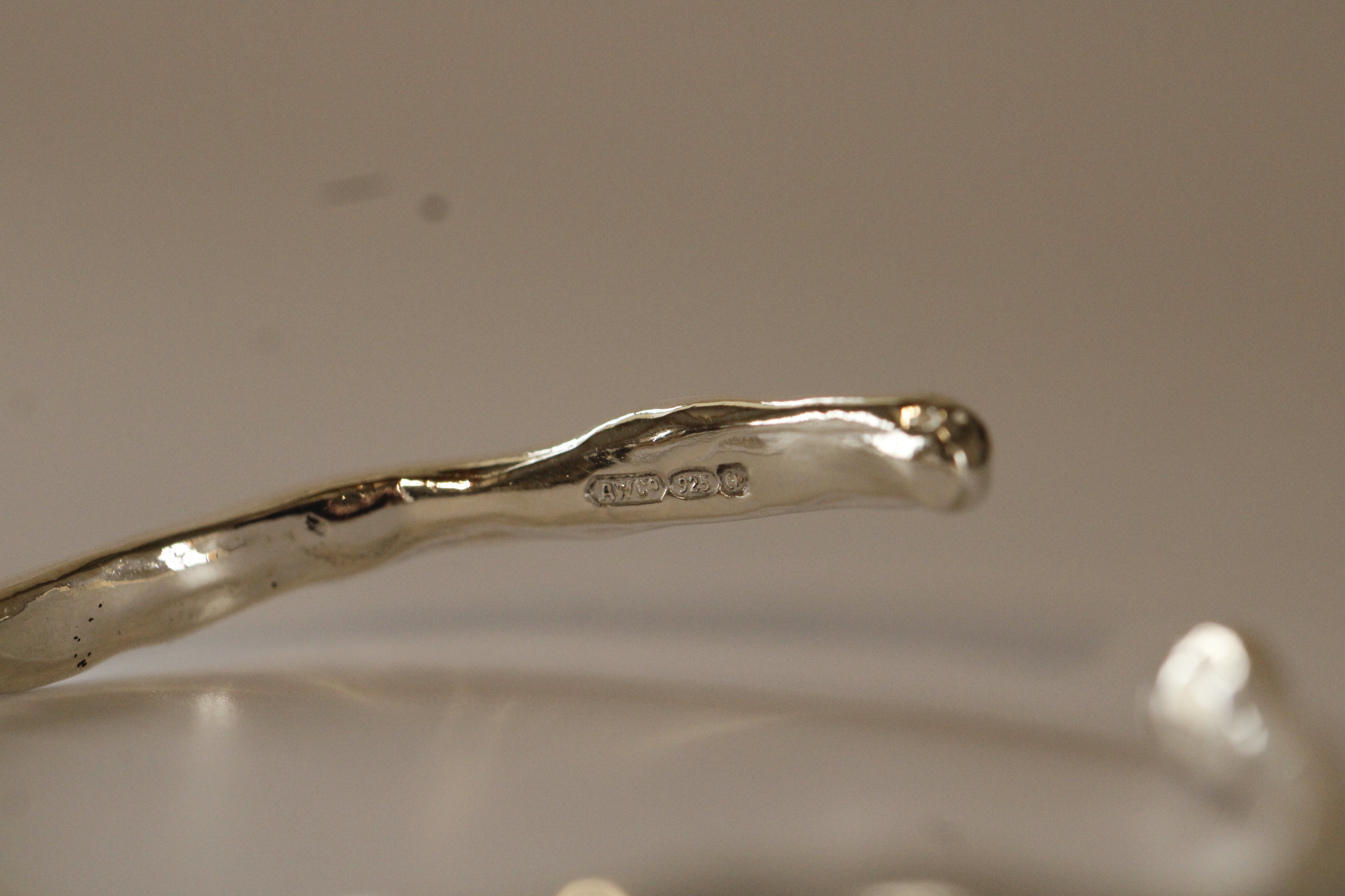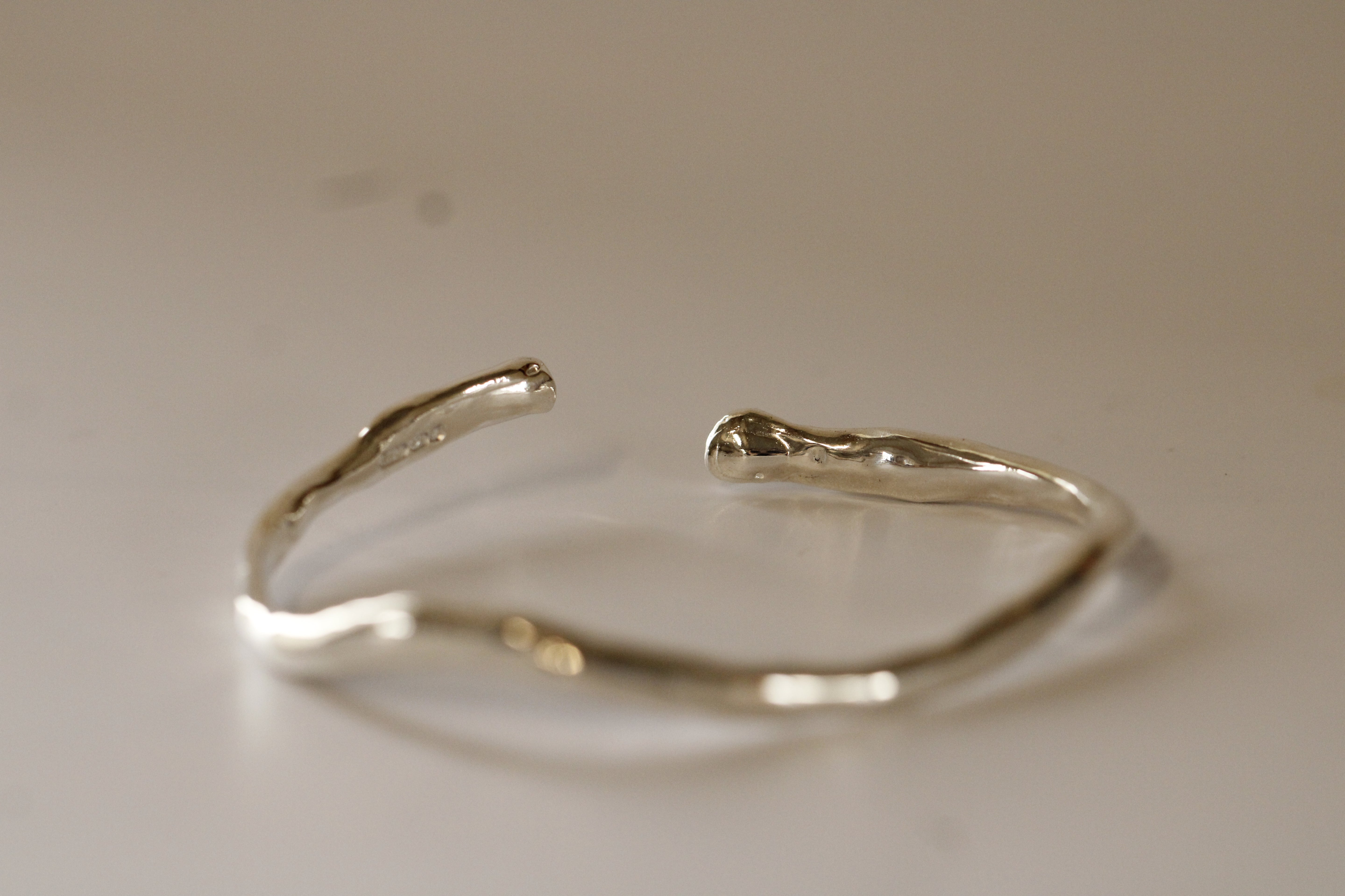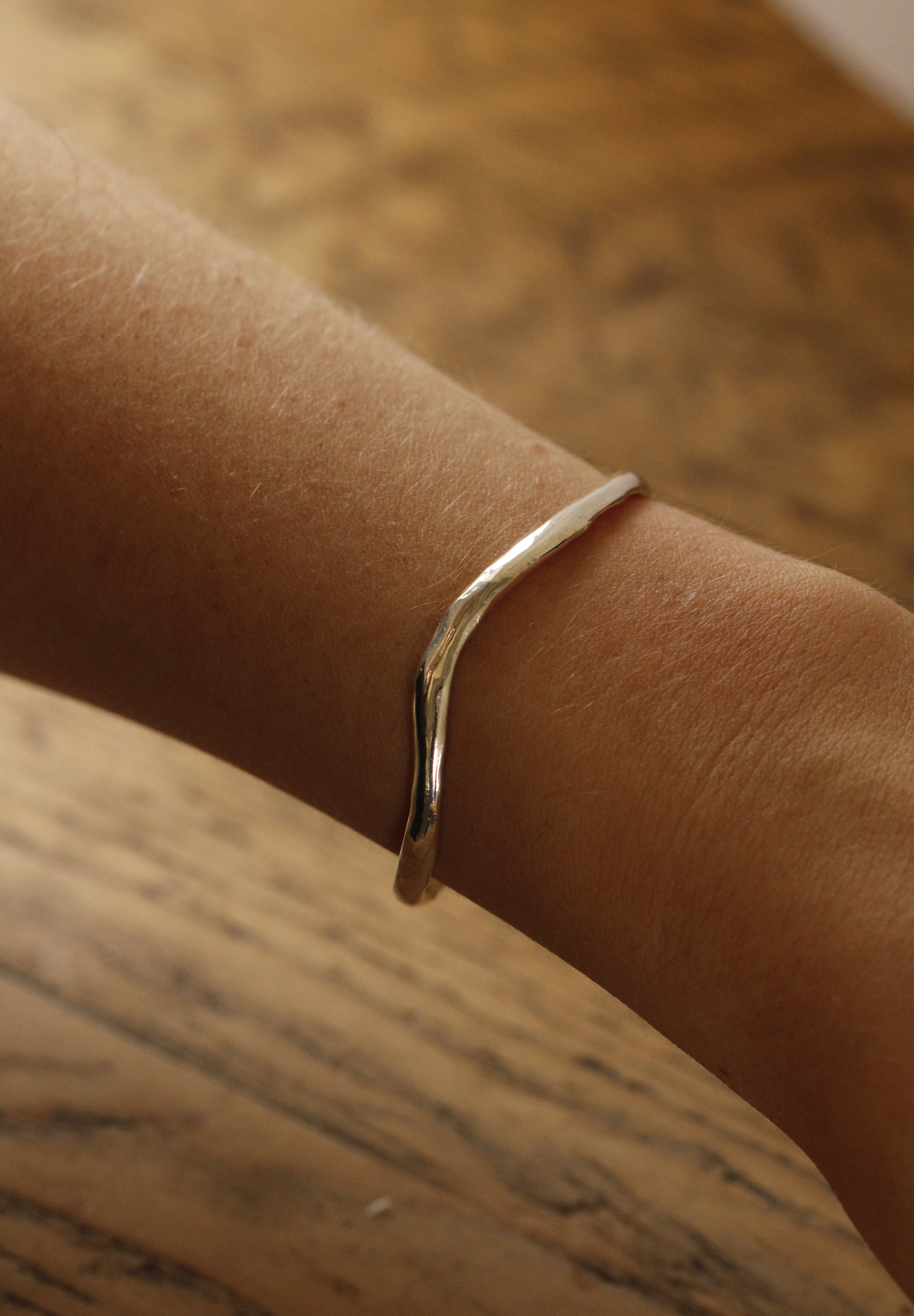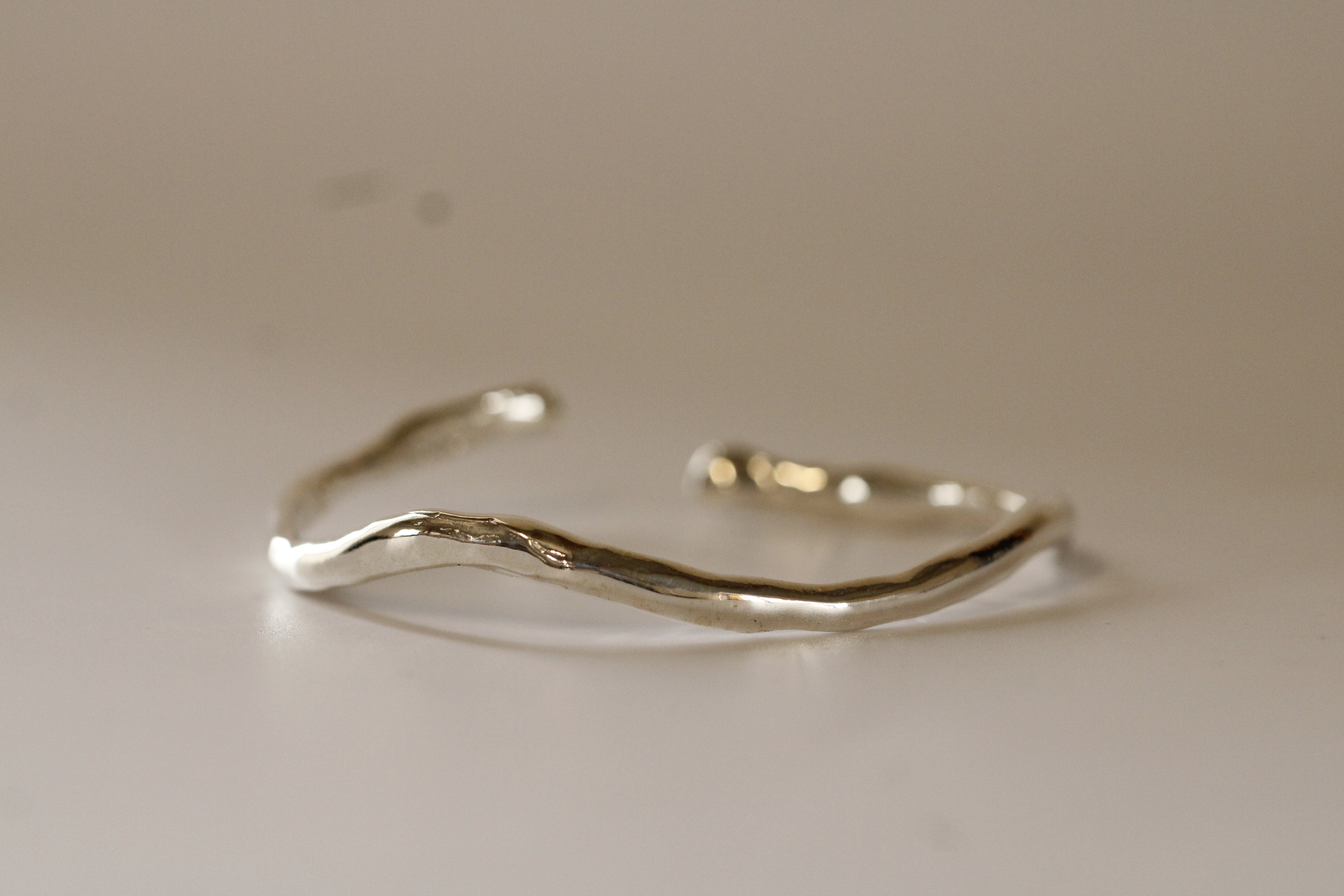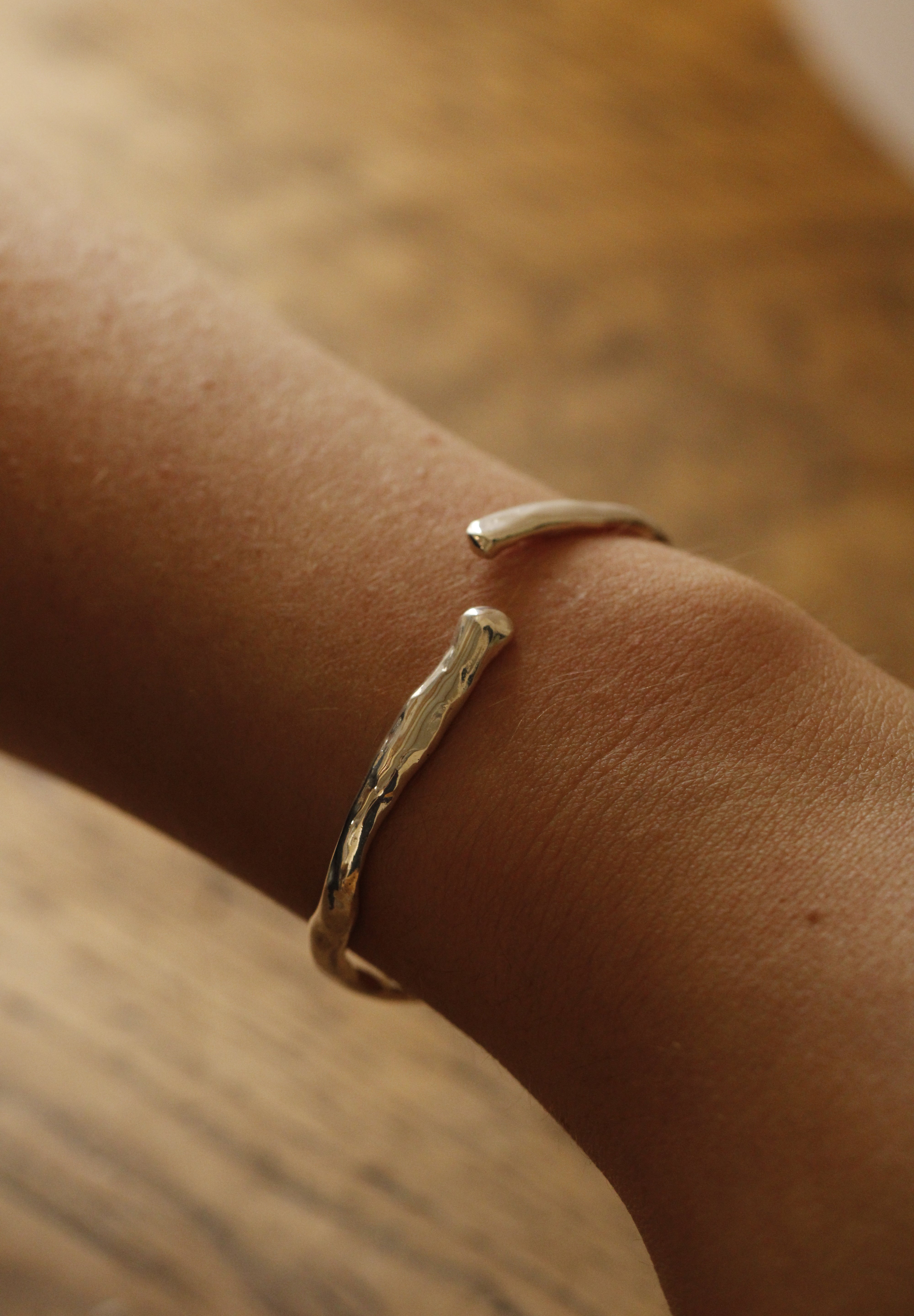 Each bangle begins its life in wax. Sculpted and melted by hand, creating organic textures and unique contours that can never be replicated. The wax form is then cast into solid sterling silver, preserving every ripple and curve from the original handmade process.