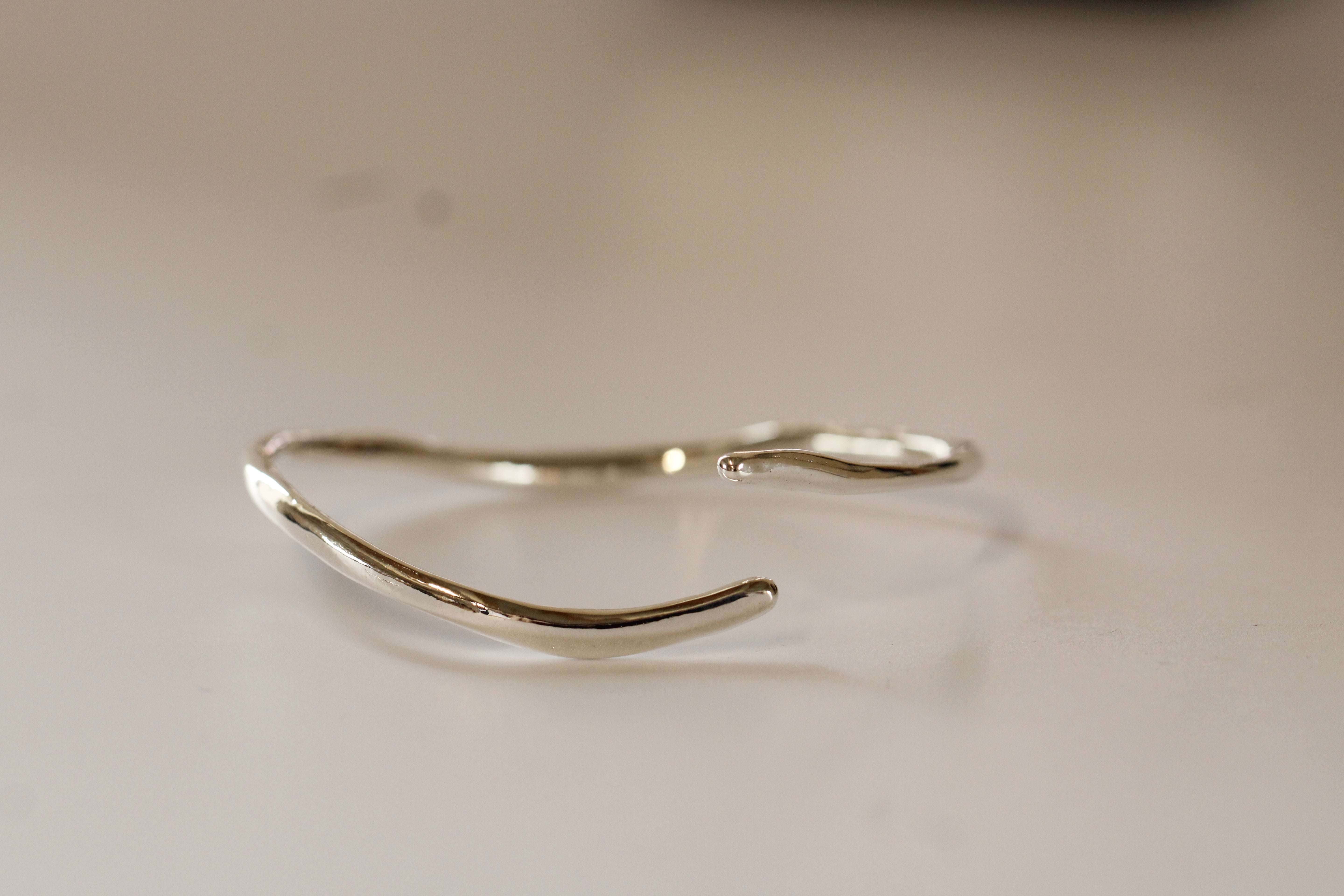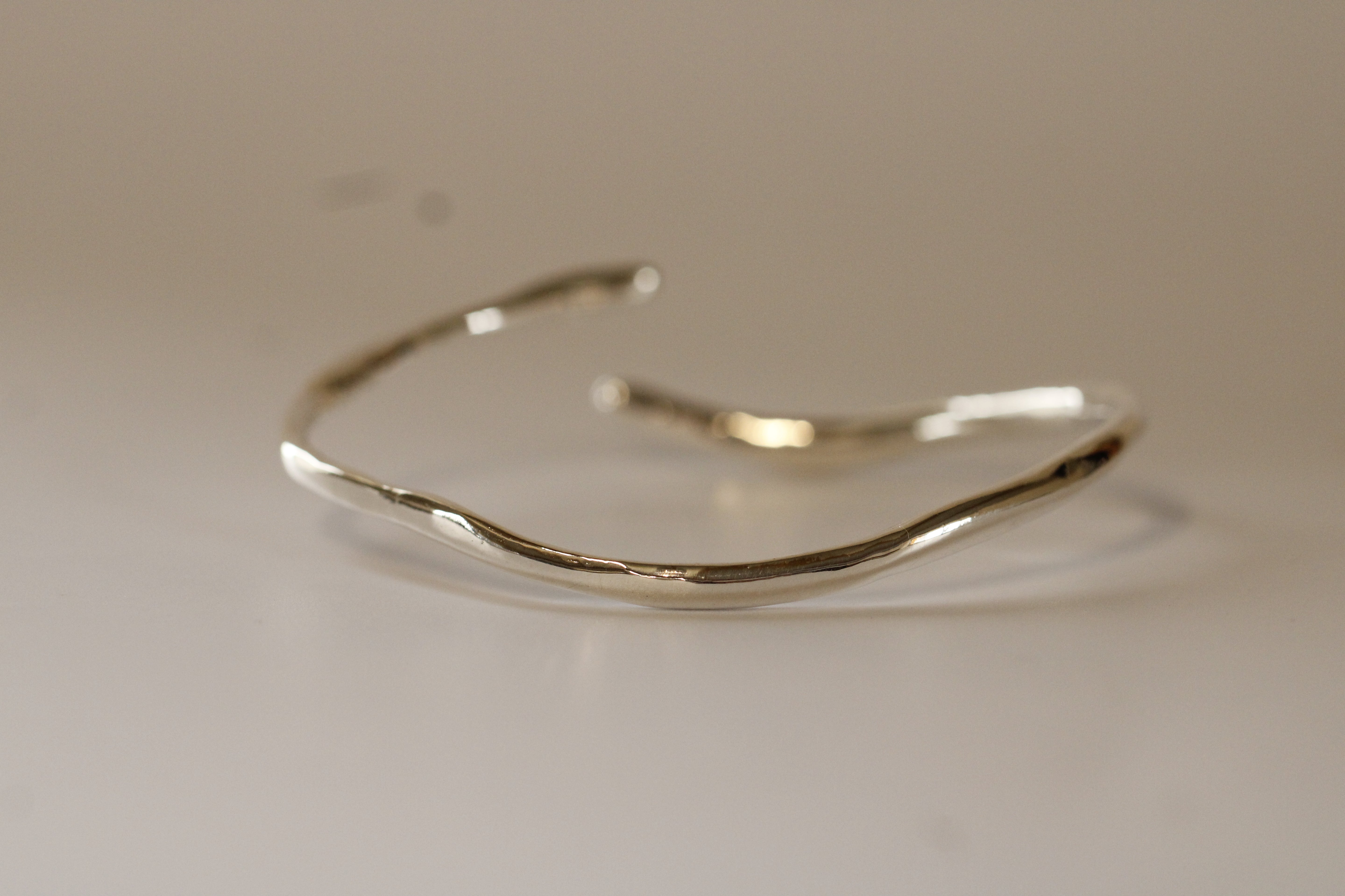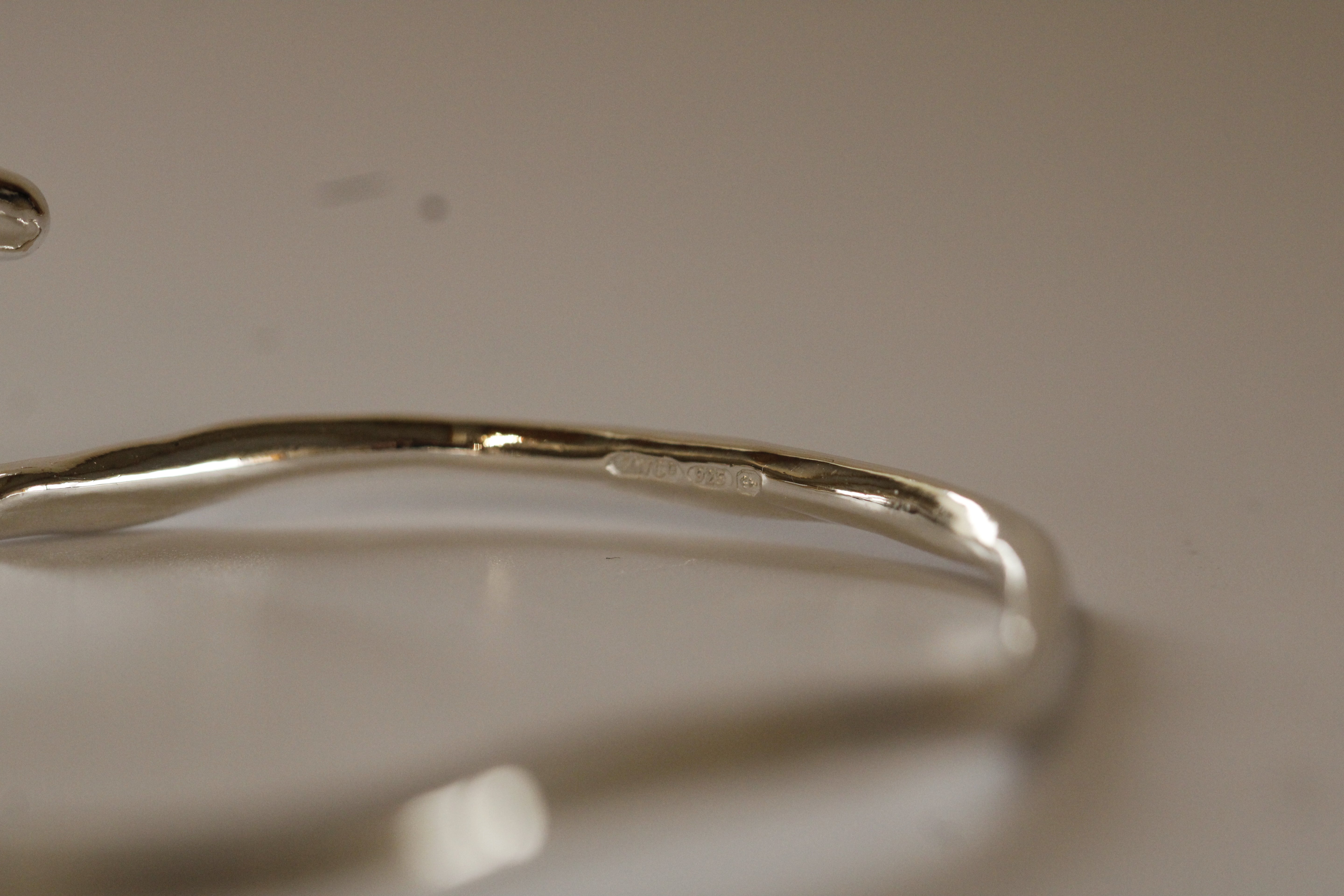 Each bangle begins its life in wax. Sculpted and melted by hand, creating organic textures and unique contours that can never be replicated. The wax form is then cast into solid sterling silver, preserving every ripple and curve from the original handmade process.