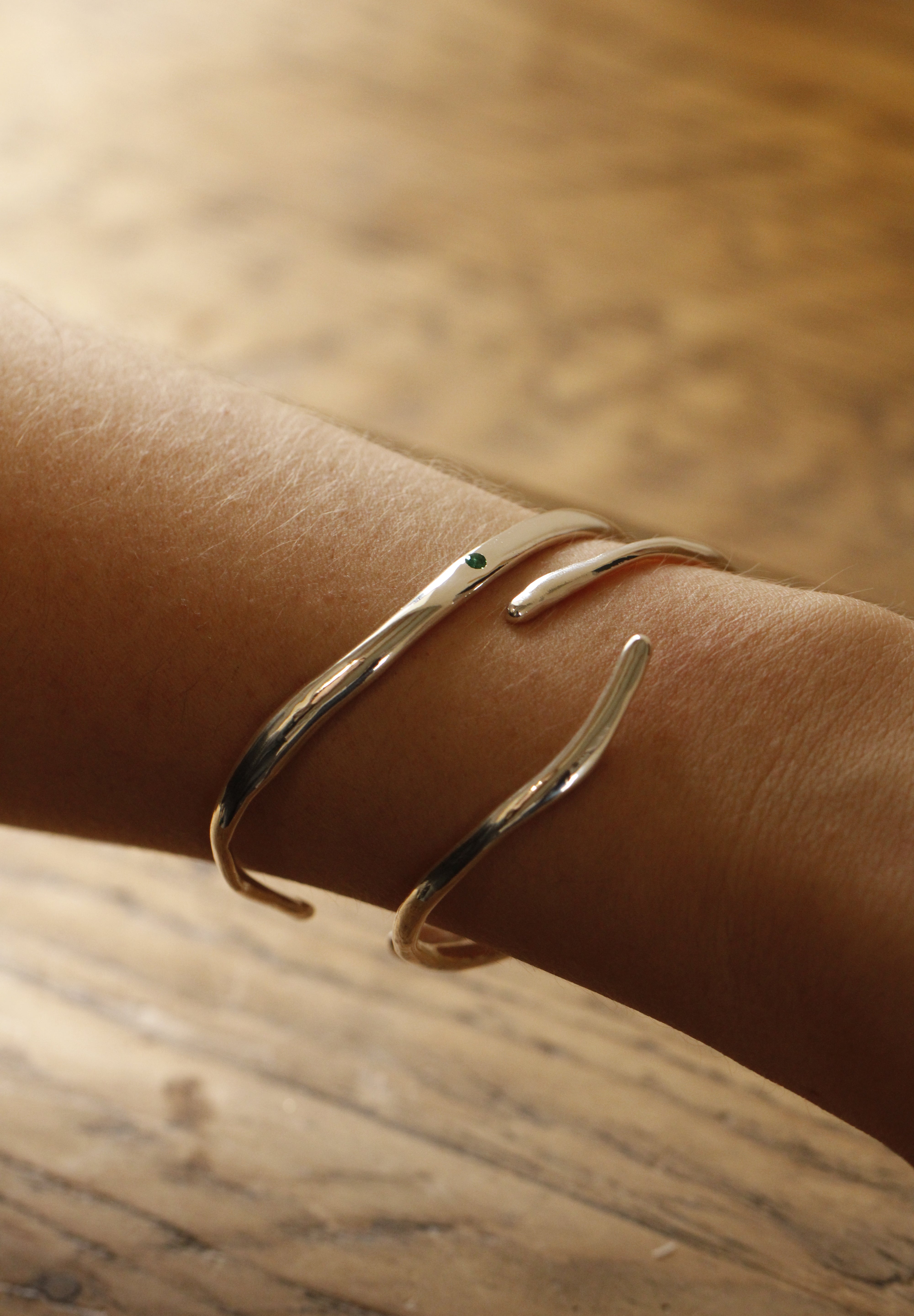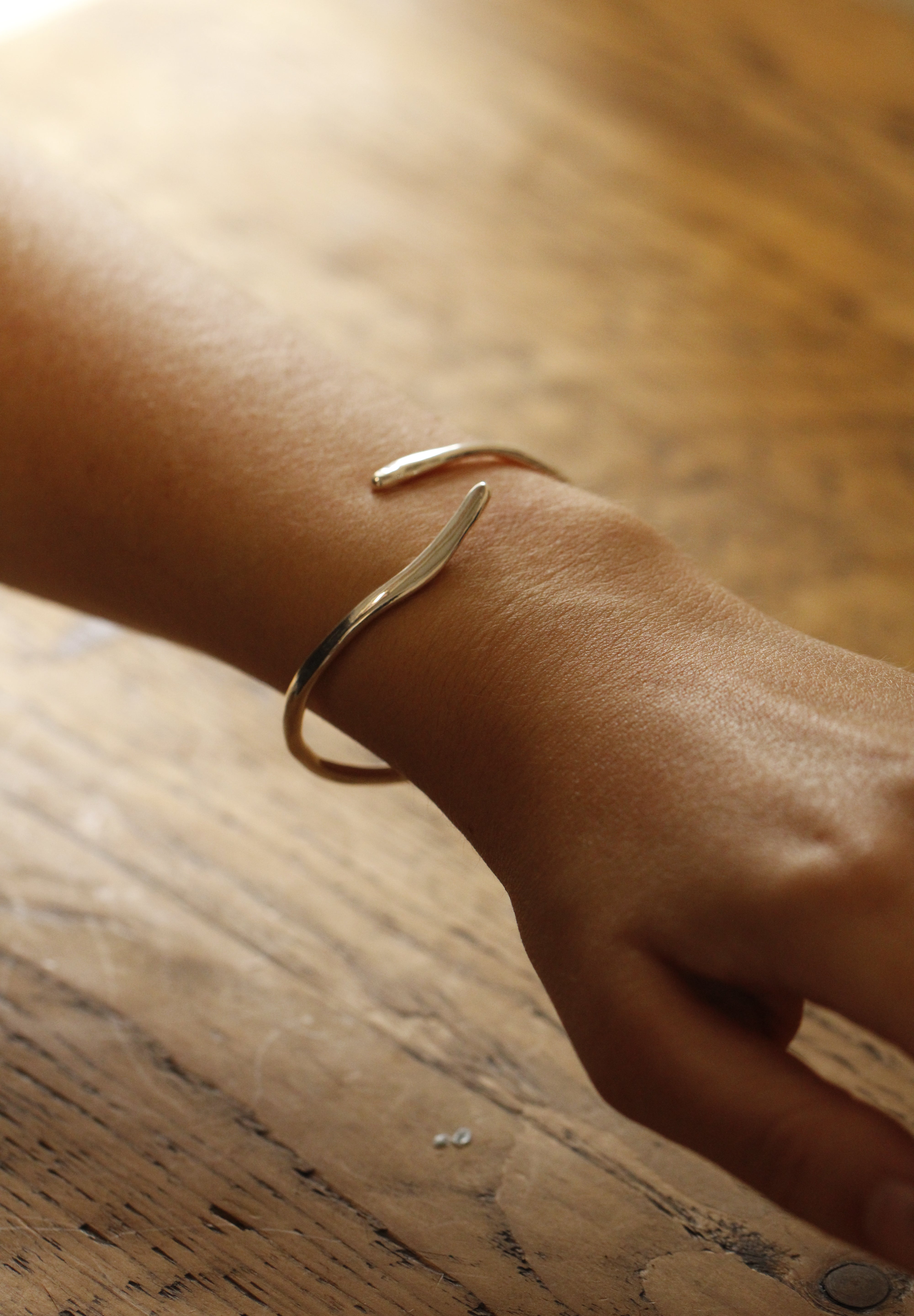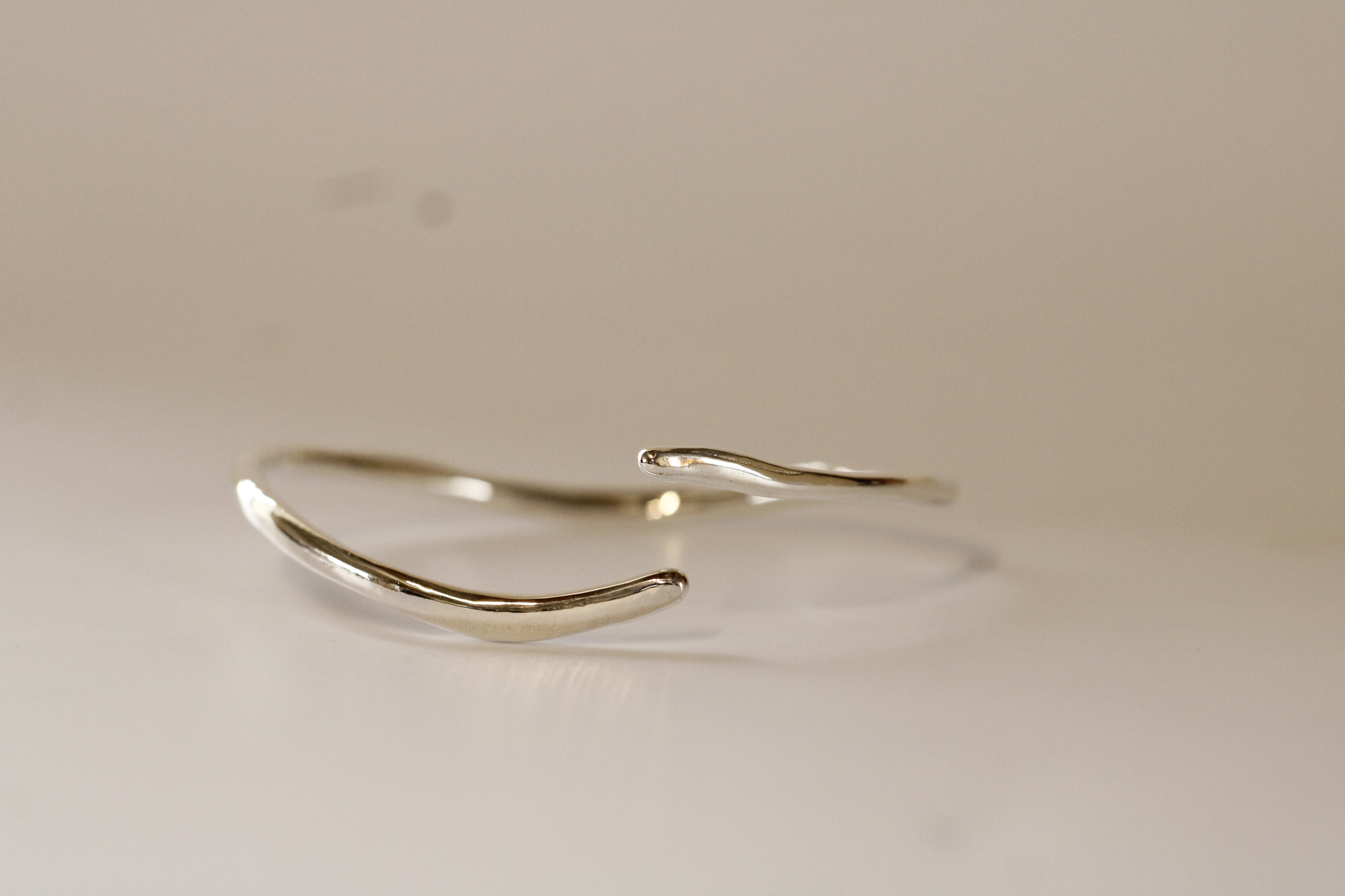 Each bangle begins its life in wax. Sculpted and melted by hand, creating organic textures and unique contours that can never be replicated. The wax form is then cast into solid sterling silver, preserving every ripple and curve from the original handmade process.