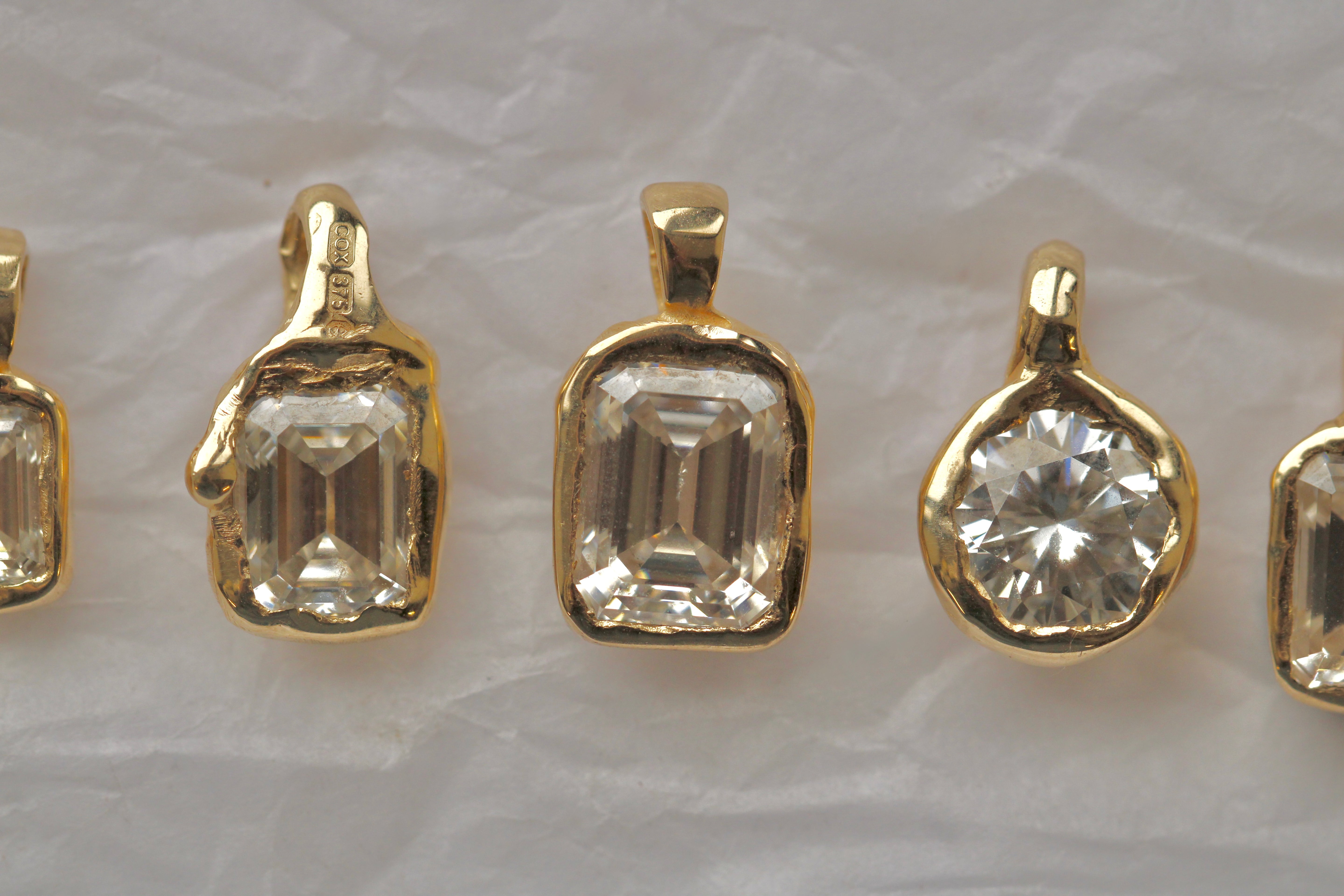 7x9mm Emerald cut. Perfect clarity and free from inclusions. Completely colourless D-E colour range. Rated 9.25 on the MOH's scale of hardness. Environmentally friendly.