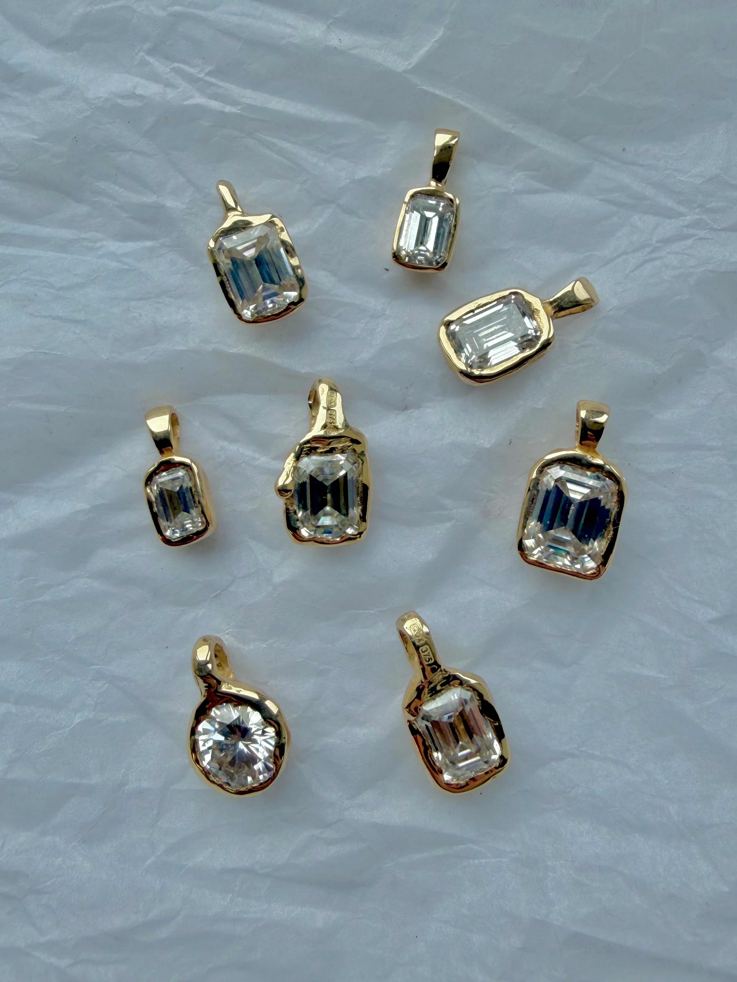 At its centre sits a flawless, stone of your choice, suspended on a 16 inch chain.