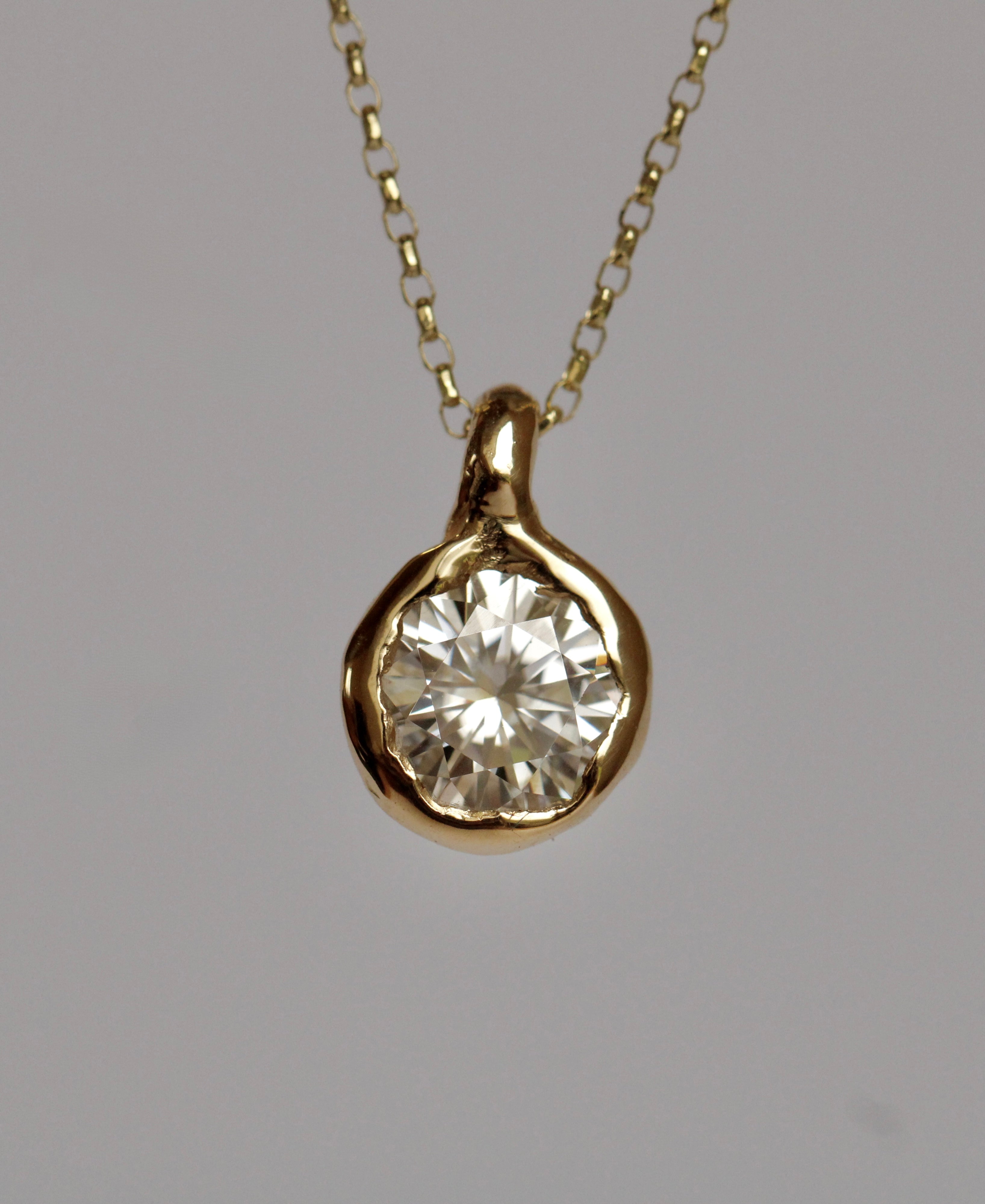 This organic 7mm round necklace is handcrafted in a metal of your choice, sculpted with a natural, soft textured finish. The setting has an understated, tactile quality that reflects the light beautifully, giving the piece a refined yet organic presence.