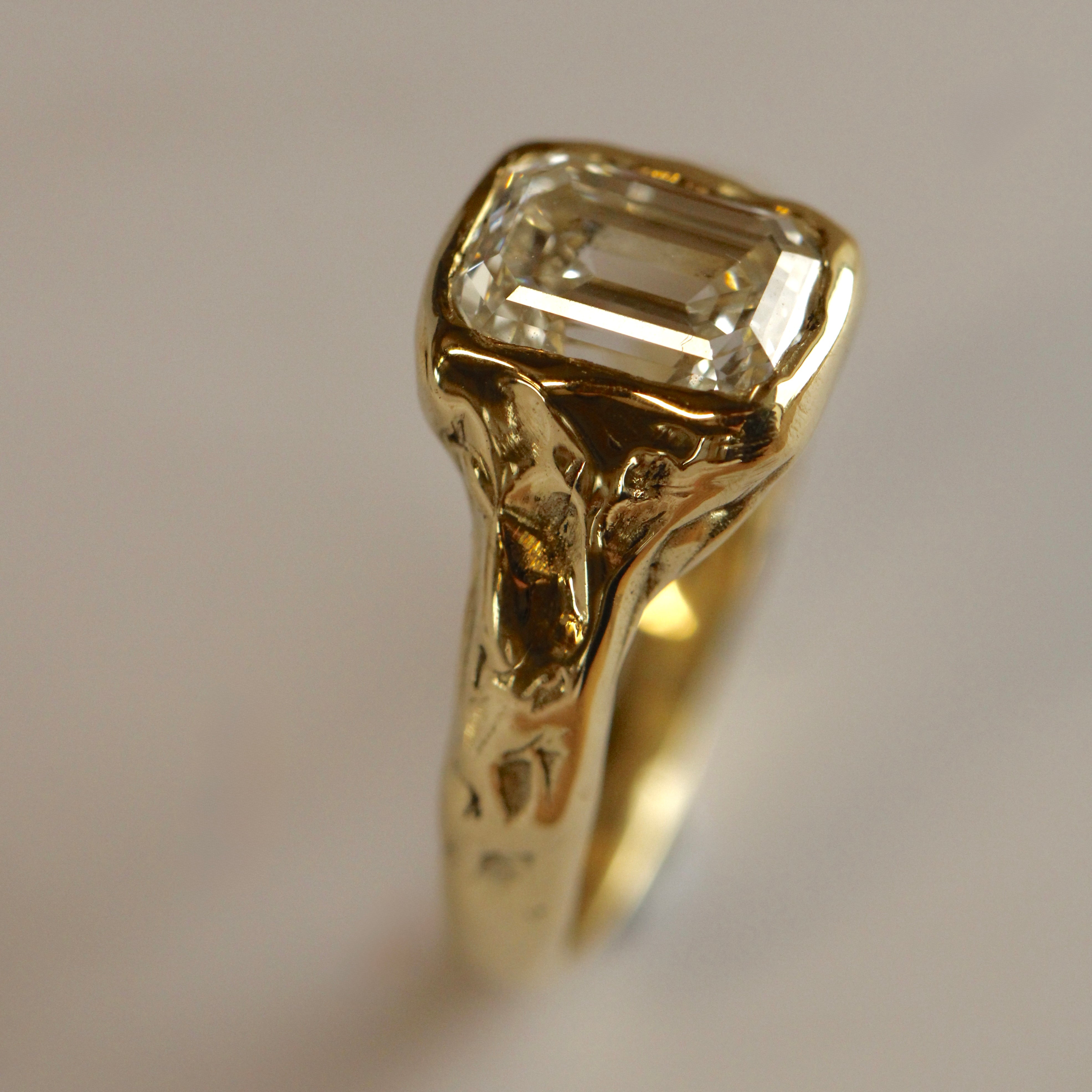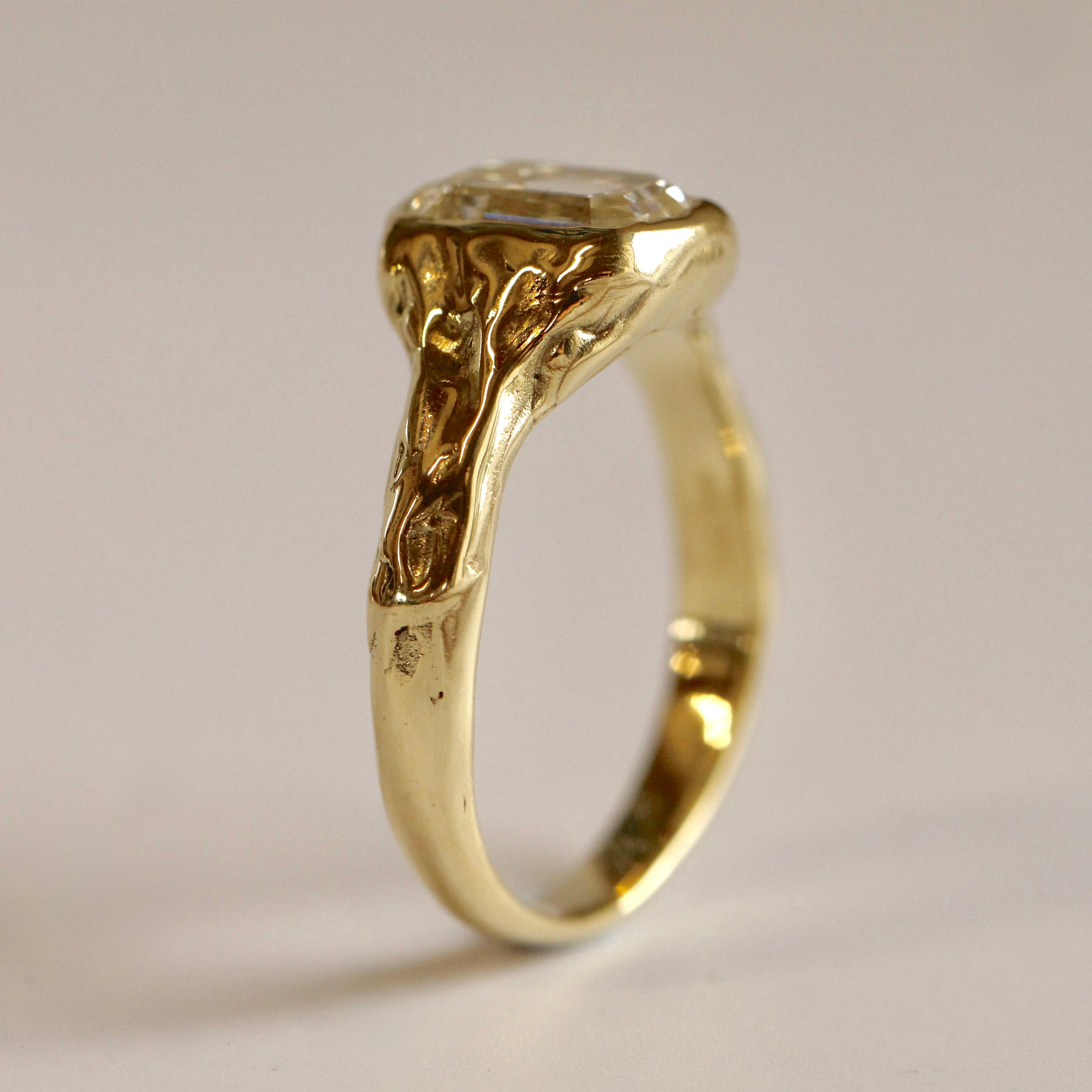 Each ring begins its journey in wax, meticulously shaped to your specifications and designed to securely hold your chosen gemstone