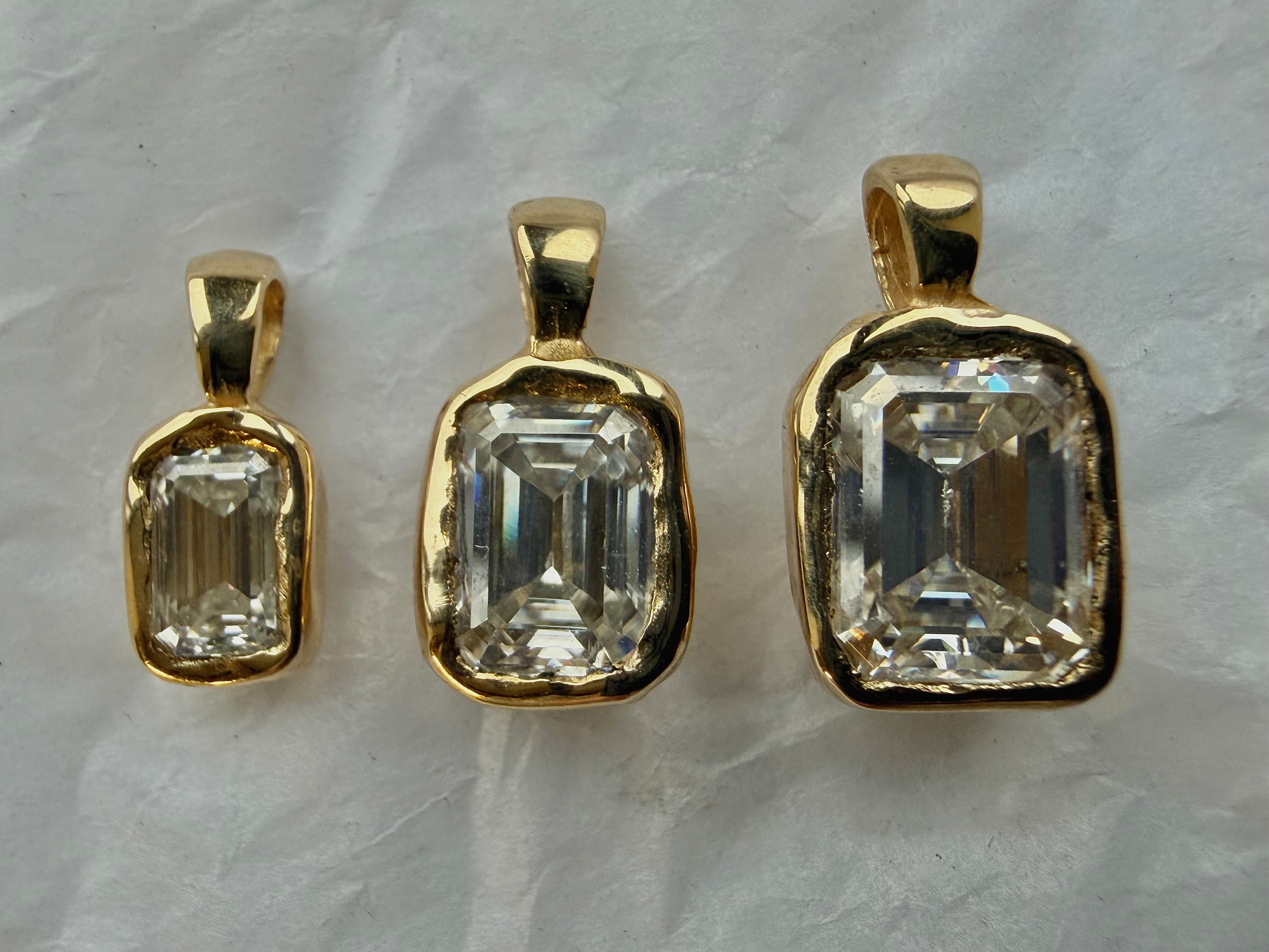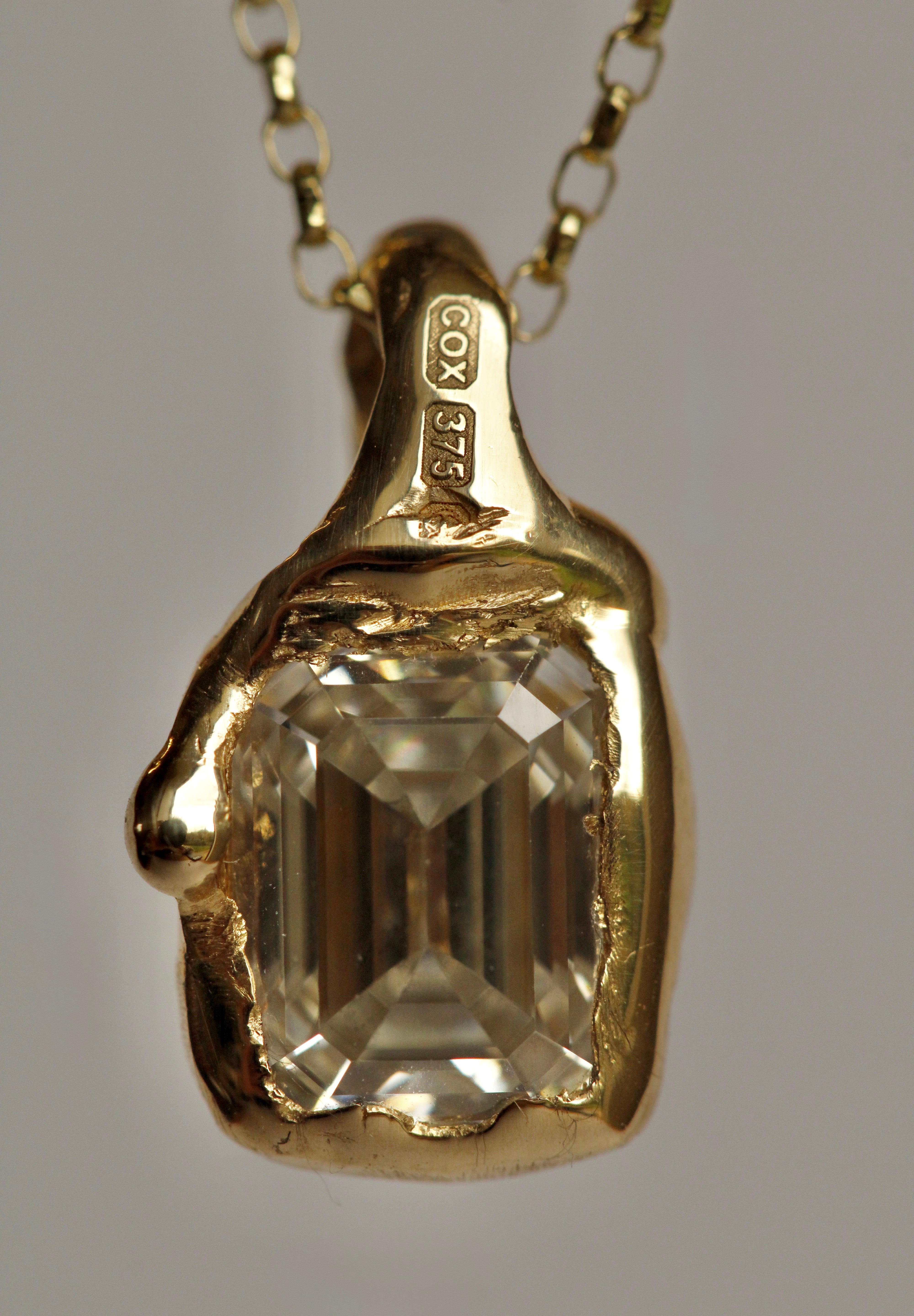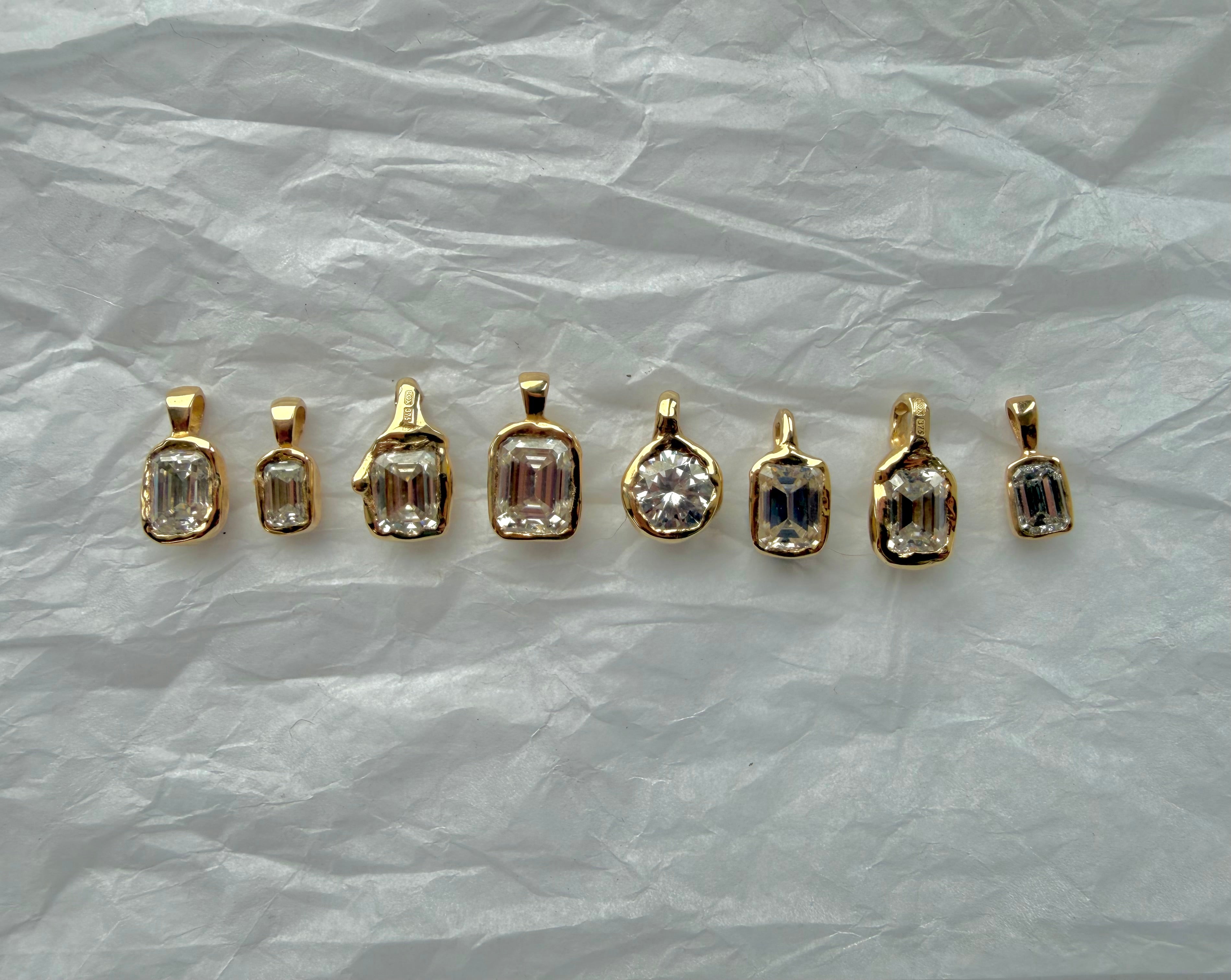 This organic 8x6mm moissanite necklace is handcrafted in solid 9ct gold, sculpted with a natural, soft textured finish. The setting has an understated, tactile quality that reflects the light beautifully, giving the piece a refined yet organic presence.